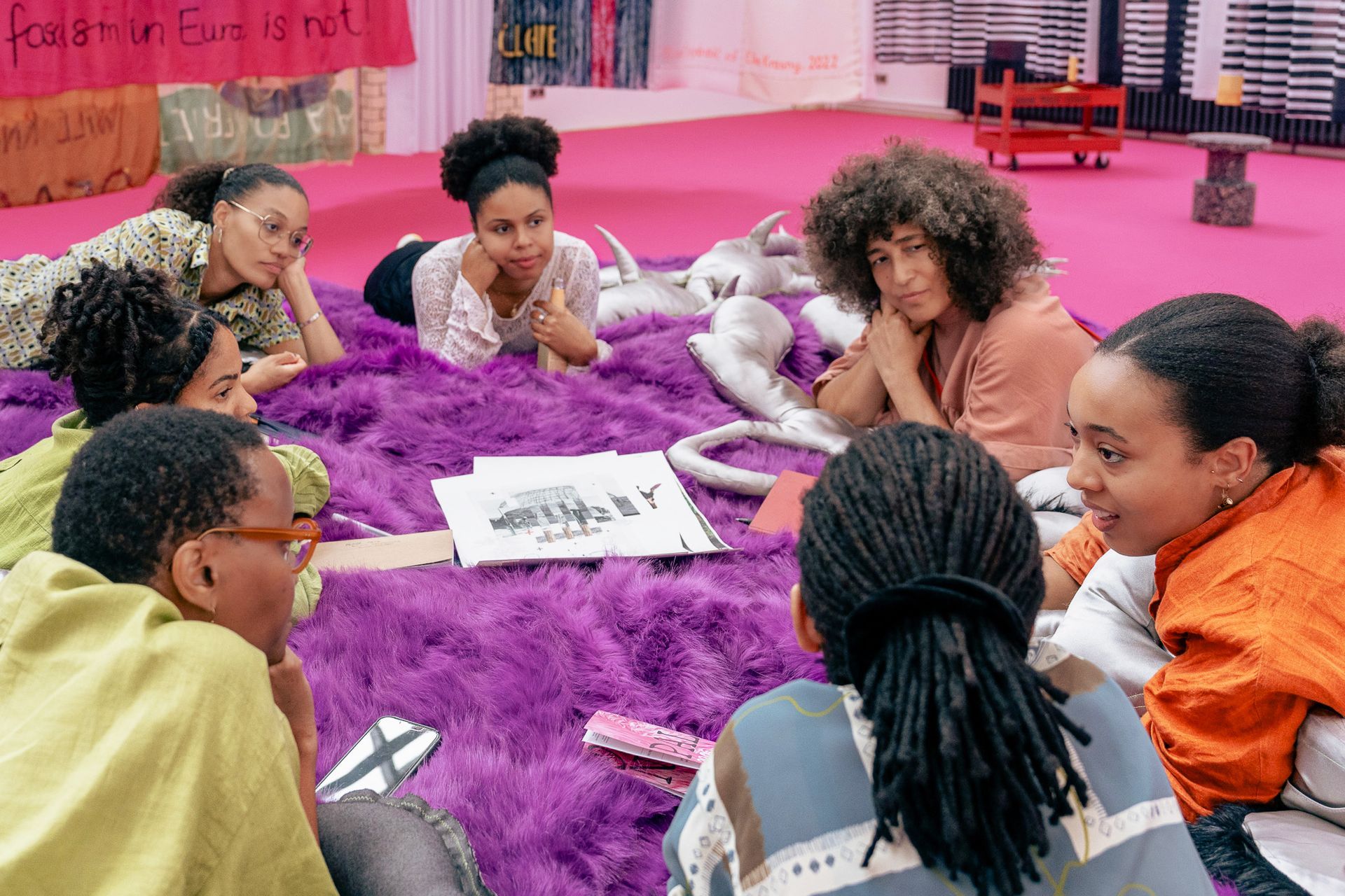 PALACE OF UN/LEARNING questions normative and patriarchal spatial structures and advocates for an inclusive, intersectional planning that focuses on care and community as well as creating spaces for marginalized perspectives and diverse life realities.