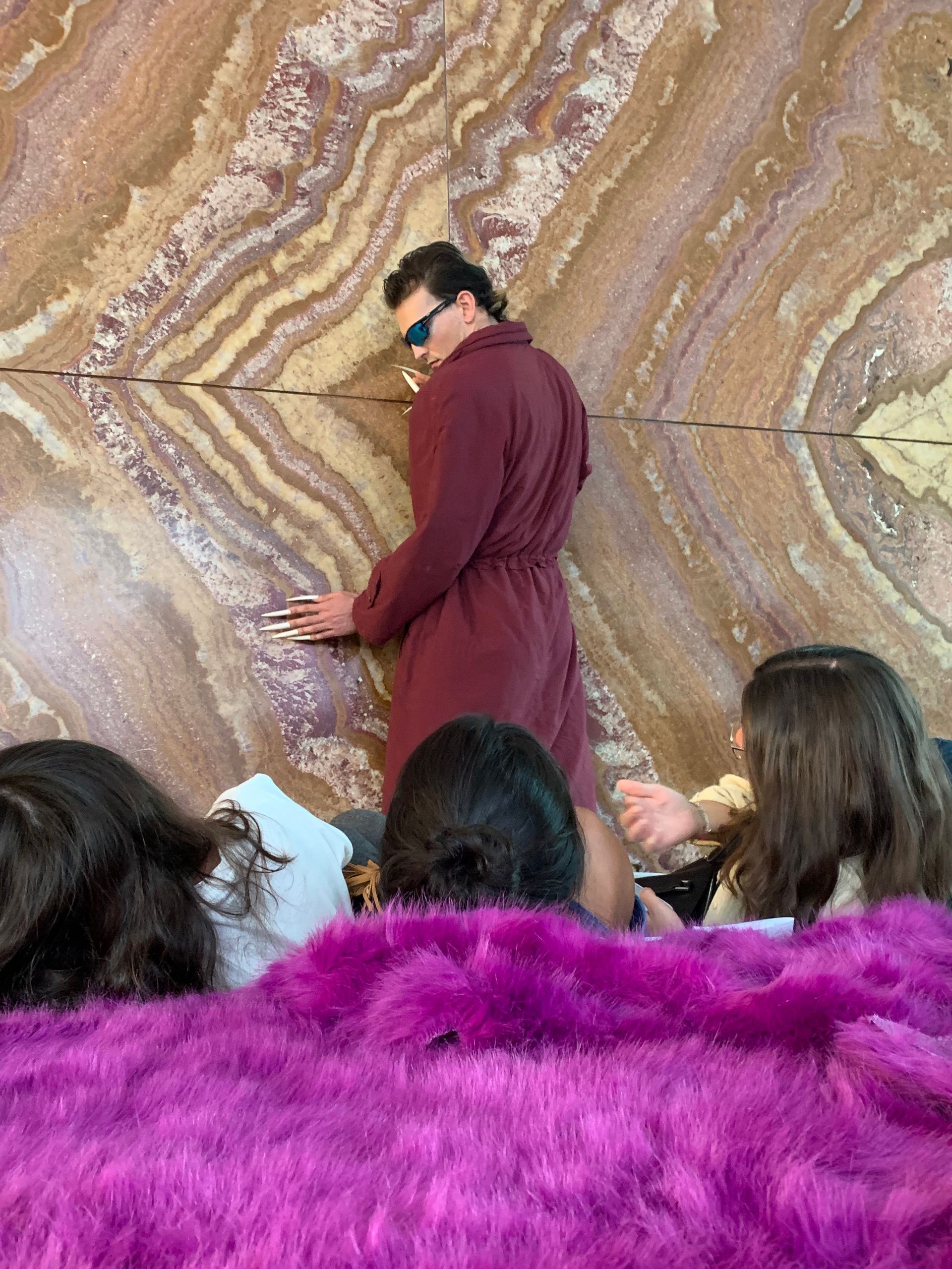 Glitching Mies created an in-between moment showing the transformative potential of otherness and multiplicity by un/learning and re/claiming the status quo. An ambiguous glitch where questions arise: What‘s good? Who is we? Whose histories are told? On 27th and 28th of April several interventions at the Barcelona Pavilion, that glitch the usual visual reproduction of the pavilion, interrupted peoples’ flows through space and provoked moments of questioning hegemonic references in today‘s architecture: Let‘s overcome the submissiveness!