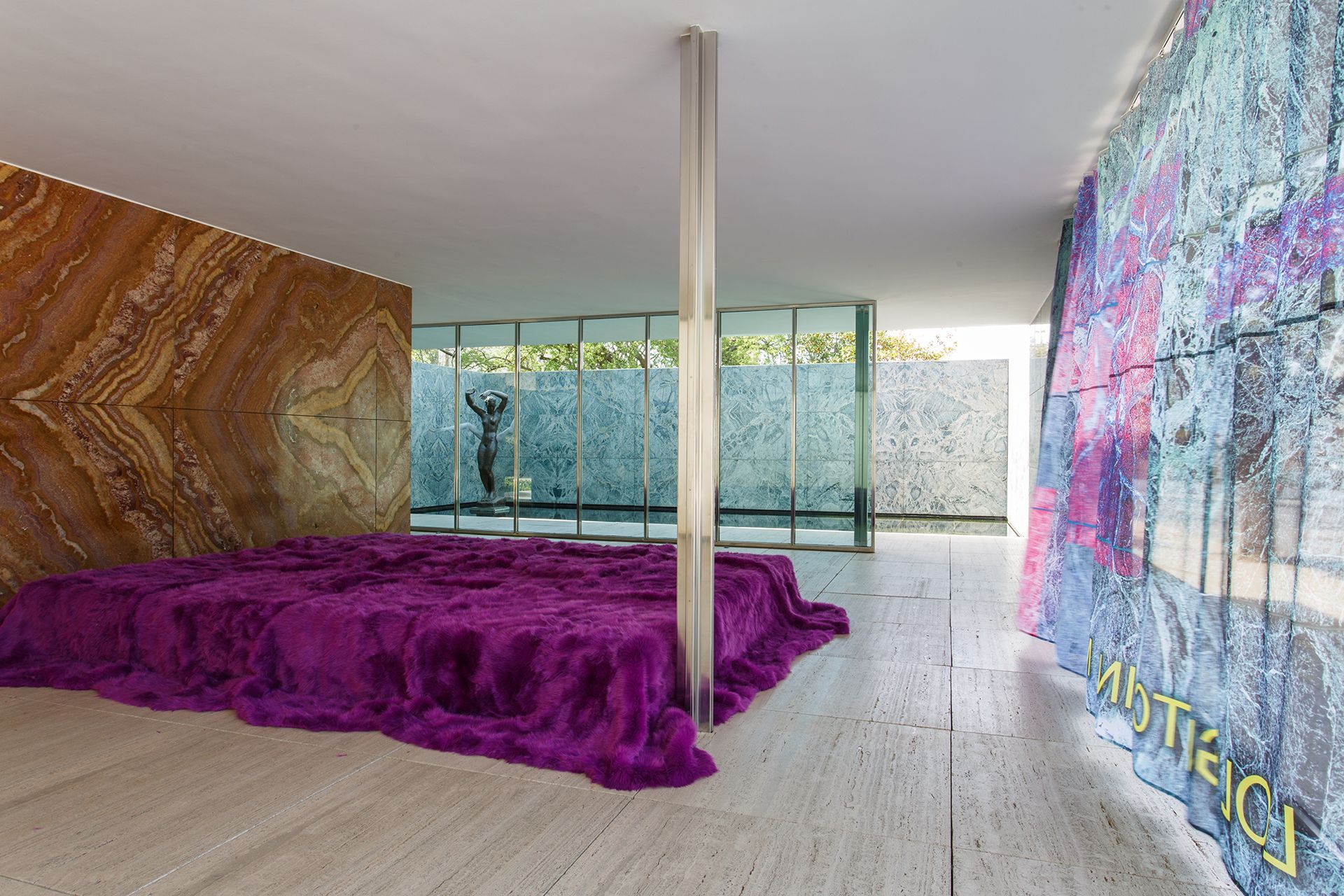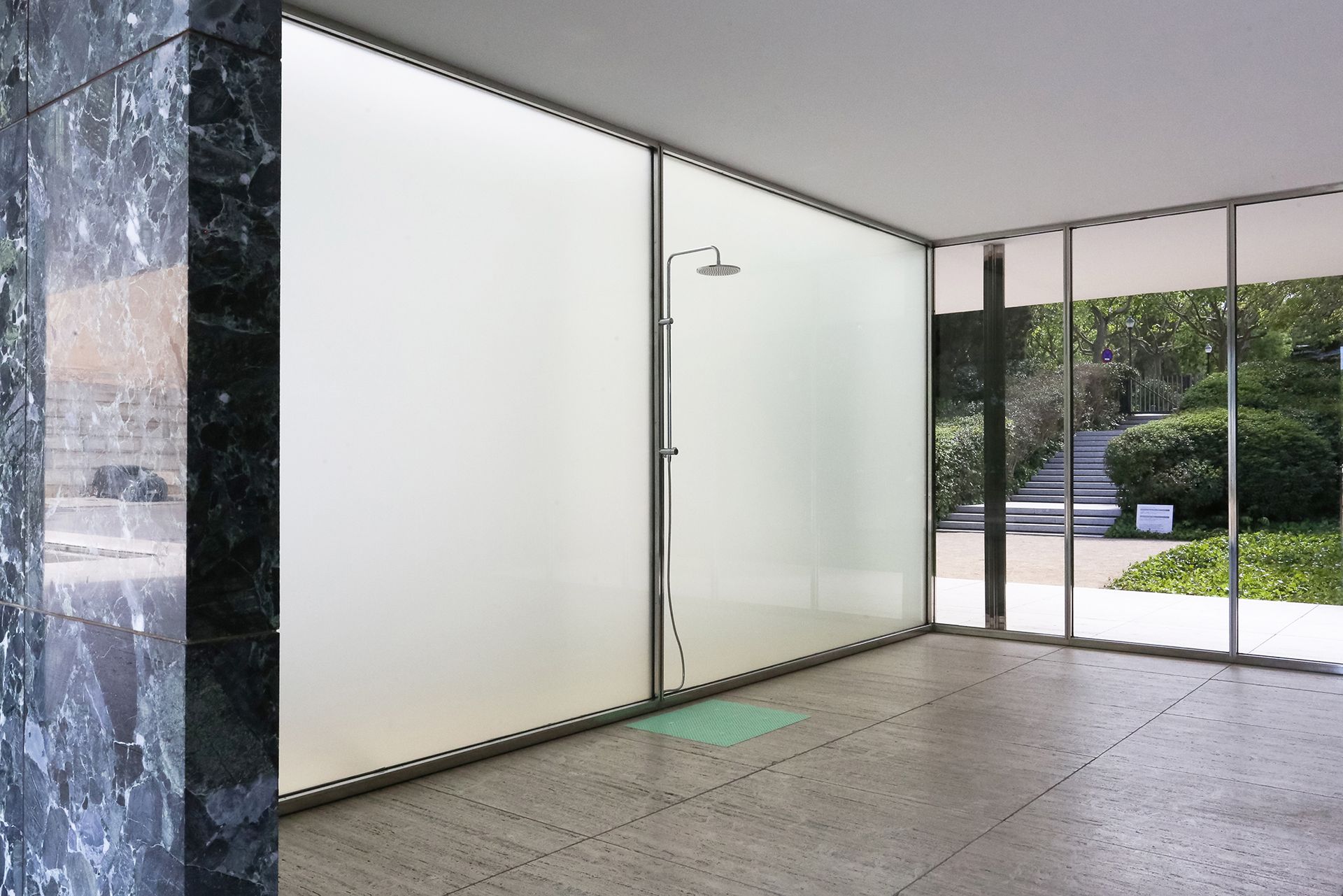 As an undisputed reference, the pavilion represents the dominant narrative of the architectural canon: spaces emptied of any domesticity, framed by hard and prestigious materials and homogenous staged elements of objects, people and stories around it. But every building narrative has its accidents, cracks and glitches that can unleash “phantomed stories” [Jaque, 2020]. Glitching Mies embraces these blurring moments of counter visibility through occupying and irritating the well-known spatial and visual setting of the Pavilion, by transitioning its materiality, its boundaries and hierarchies.